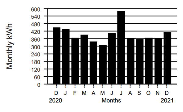 Avg energy consumption 950 kWh per month.